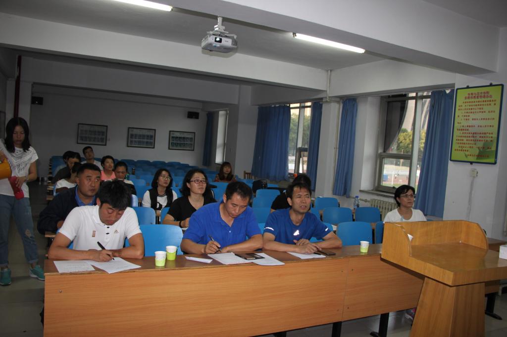 公共体育部组织部分体育理论课教师进行试讲比赛,旨在提高体育教师理论水平和讲课技能。