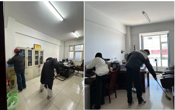 的地板擦洗的一尘不染,并对垃圾进行整理投放。在劳动中,大家团结协作,发扬不怕脏不怕累的优良作风,积极主动地净化每个角落。经过辛勤地劳作,实验室、多媒体教室、资料室、会客厅和足球现场直播