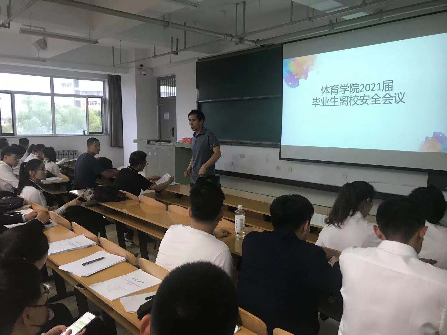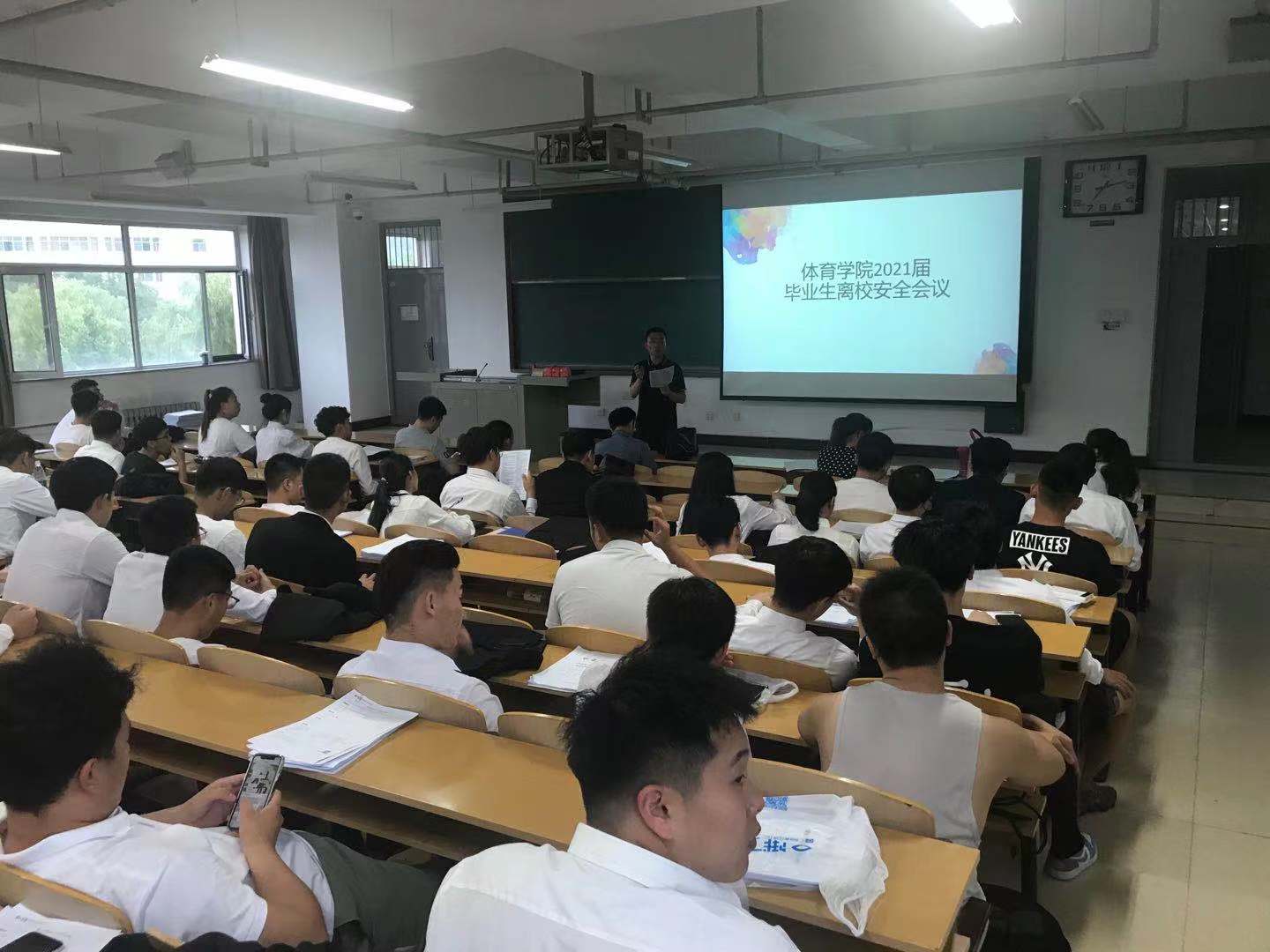 党委副书记贾鹏主讲,学生科长李士荣主持,全体2021届毕业生参加会议。