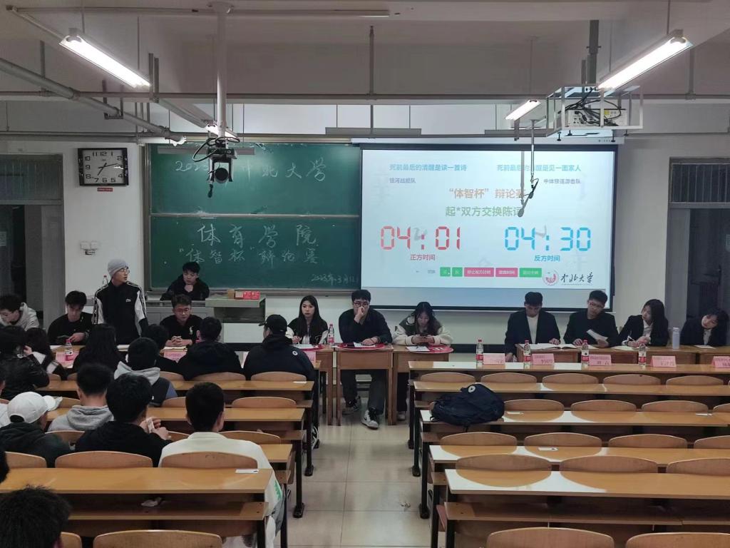 在15202H教室举办了“体智杯”辩论赛,比赛由学生会主席刘文松主持。