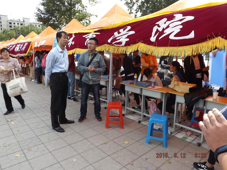 2015年的迎新工作全面展开。在大家精心的安排和准备下,迎新现场分工明确、井然有序。院长曹电康、足球现场直播