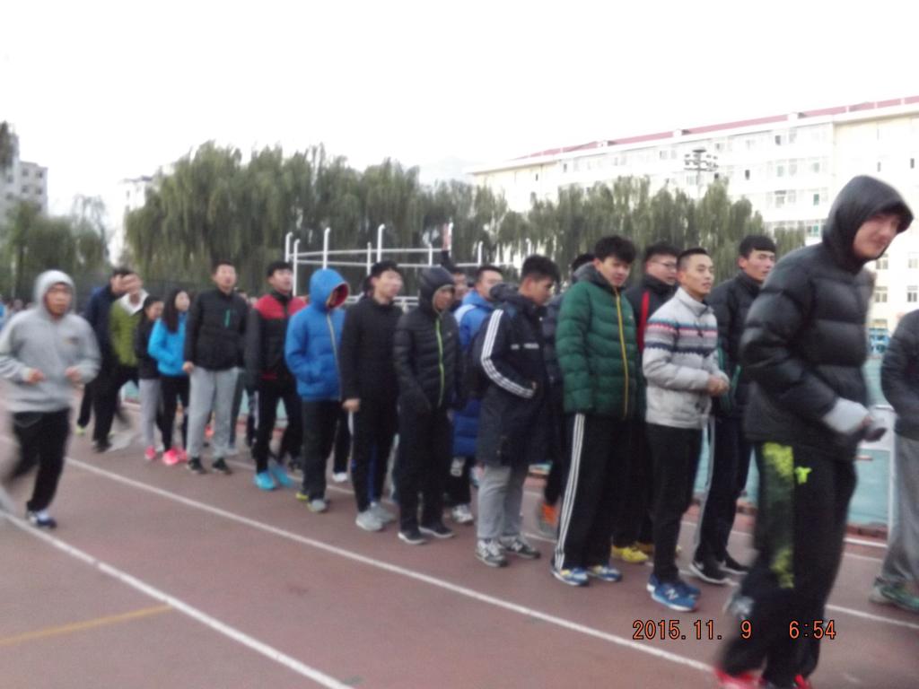 各系老师的亲切关怀下,由学生会负责人王老师带领学生会各部门成员悉心组织安排了“阳光体育,健康晨跑”早操活动。目的是为鼓励大一新生以崭新的面貌开启大学生活。