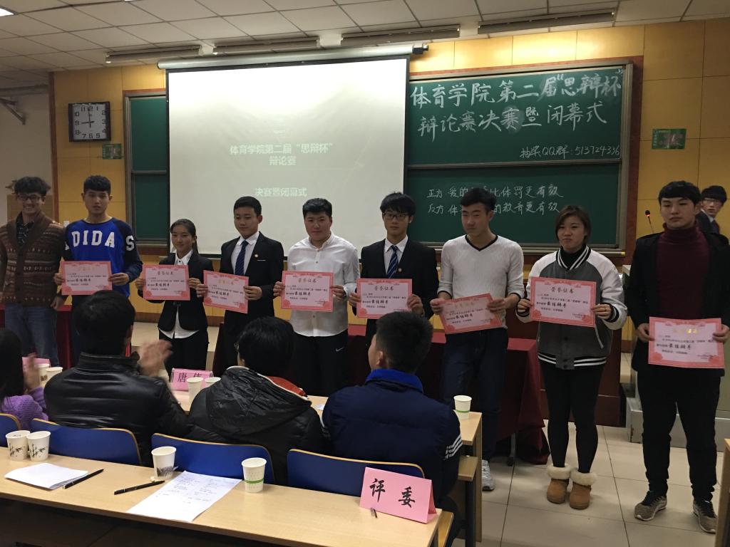 本次的辩论赛正方的辩题是爱的教育比体罚更有效,反方的辩题是体罚比爱的教育更有效,在最扣人心弦的决赛阶段,参赛队伍乘风破浪,气势如虹,自由辩论环节将比赛气氛再次推向高潮,现场气氛迅速升温,精彩不停,掌声不断,双方辩手争锋相对,唇枪舌剑,却又不失风度,侃侃而谈,现场气氛迅速升温,精彩不停掌声不断。经过激烈的比赛,最终社体代表队获得了第一名。