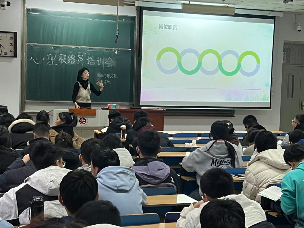 于11105教室联合举办2024年秋季学期心理联络员培训会。本次会议由学生工作部心理健康教育中心高林老师主讲,足球现场直播