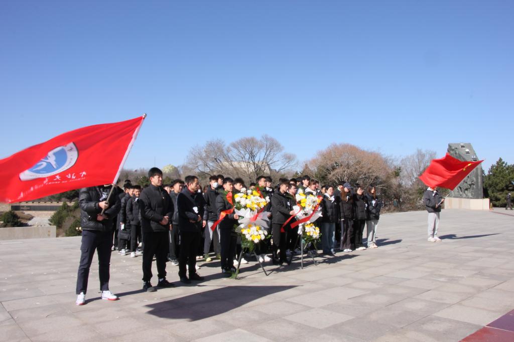 全体师生在百团大战纪念碑前整齐列队,肃穆默哀,并向革命先烈敬献花篮。随后,学生党员代表裴健程发言,表达了对革命先烈的深切缅怀和崇高敬意,他表示,作为新时代青年,我们肩负着新的使命与担当,定当继承先烈遗志,为实现中华民族伟大复兴而努力拼搏。接着,贾书记为大家上了一堂深刻的党课,他强调,革命先烈是民族的脊梁,他们的奉献与牺牲铸就了如今的和平与繁荣,我们要铭记历史,感恩先烈,传承红色基因,坚定理想信念。他对师生们提出殷切期望,希望大家在今后的学习和工作中,挺膺担当,奋楫笃行,将红色精神融入日常,为学校发展、国家建设贡献力量。