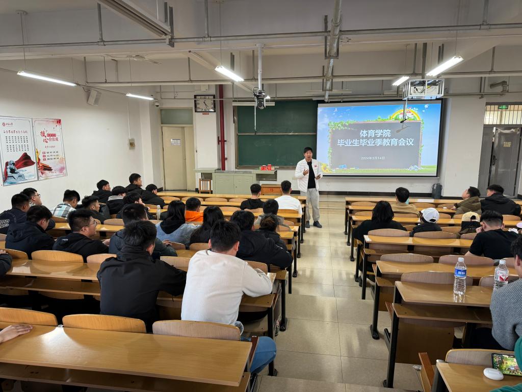 于15206H教室开展了2024届毕业生毕业季教育会议。院党委副书记贾鹏、学生科科长李士荣、辅导员李佳怿以及全体2024届毕业生参与会议。