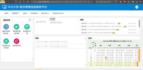 登录成功后,点击教务系统,进入教务系统,不需要二次输入用户名和密码,如下图: