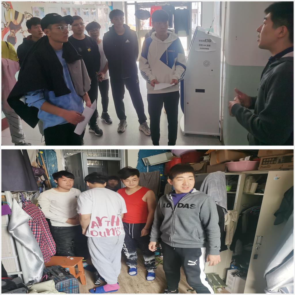 辅导员带领学生干部,对学生宿舍开展了全面的安全卫生大检查。此次检查的重点是宿舍内有无烟头、有无违禁电器,以及宿舍内用电、防火、防盗等一系列的安全问题。在本次检查中,未发现违禁物品,同时对现场发现的安全隐患、宿舍卫生问题进行详细的记录,责令相关宿舍立即进行整改,并及时向学生科汇报整改情况。