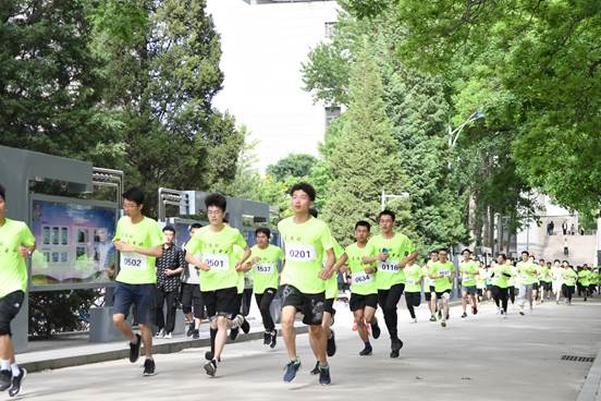 校园内道路上到处都是参赛者矫健的身影,他们有冲锋在前的学生竞速者,有不甘落后的教职工跑者,他们锐意进取,勇往直前,每个人都向着终点奋力奔跑。