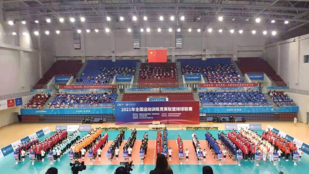 承办的2021年全国运动训练竞赛联盟排球联赛25日在天津足球现场直播