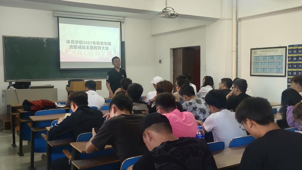 在院楼一层教室召开了2021年春季学期资助诚信主题教育大会,本次会议由学生科科长李士荣主讲,足球现场直播