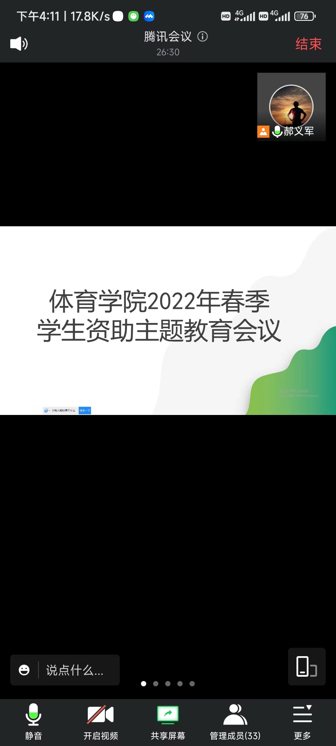 于学生科召开2022年春季诚信教育暨资助政策座谈会议,由李士荣主讲,全体足球现场直播