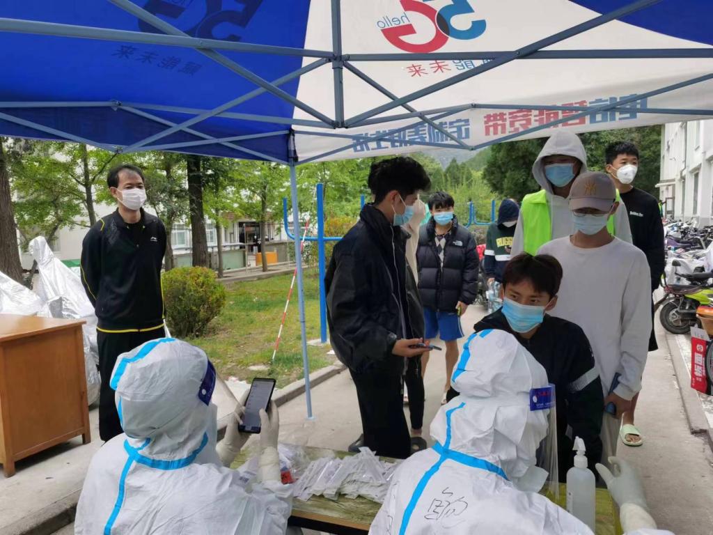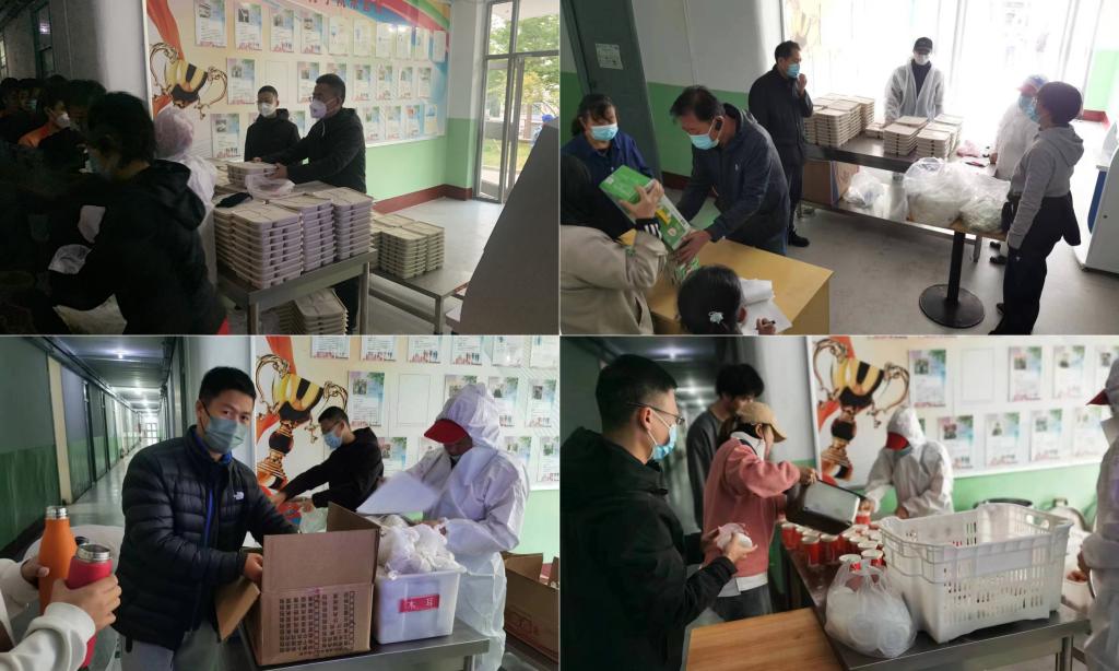 党委副书记贾鹏,带领辅导员李士荣、王宇鹏,以及十余名教师志愿者,下沉学生公寓,驻守抗疫一线,全面做好同学们的核酸检测、饮食生活、宿舍楼安全卫生等各项工作,为学生生活纾困解难、健康保驾护航。