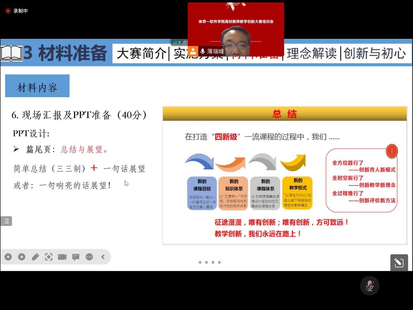 薄瑞峰教授结合本人的参赛经验,从大赛简介、实施方案、材料准备、理念解读、创新与初心等方面展开阐述。并就老师们关心的问题进行了深度交流。