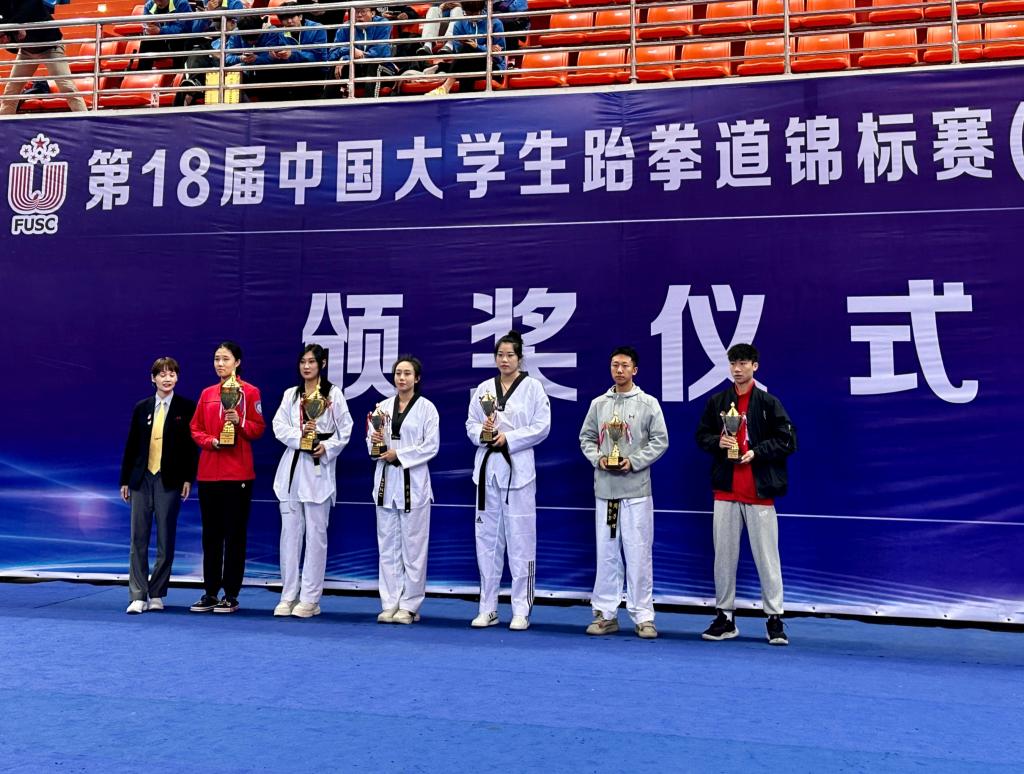 本次赛事吸引了来自北京体育大学、上海体育大学、中国地质大学等90所高校近700名大学生跆拳道运动健儿以及150余名教练员参赛。我校派出20名跆拳道运动员参赛,经过激烈地角逐,中北大学健儿斩获男子、女子团体总分双第二,夺得4枚银牌、2枚铜牌,5个第五名的优异成绩。