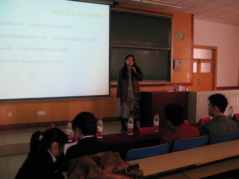 教授摄影的专业老师,她根据自己多年的拍摄经验并结合现代摄影的各流派,特准备了“无表情审美”的潮流摄影思想,以作品展示的方式向在场同学诠释了个中特点。毕浩然会长也为同学们准备了众多优秀摄影作品,从学生的角度出发,多方面多角度介绍了校园摄影的各种技巧。