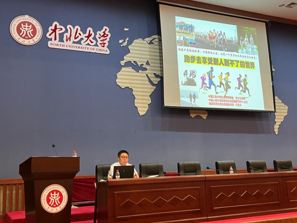 邀请国家体育总局全民健身专家、民政部中国社会组织促进会专家委员会专家、中国人民大学体育与社会发展研究中心主任于海洋教授做客中北大讲堂,在我校图书馆五层学术报告厅开展以《相信体育的力量——体育的社会价值分析》为主题的学术讲座。本次讲座由足球现场直播