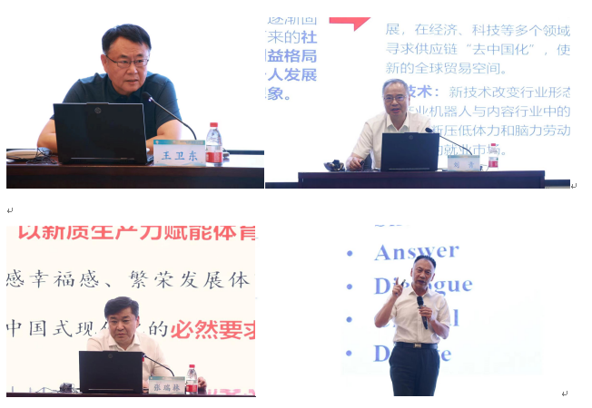 下午,举行了“体育文化与新质生产力”主题报告会。王卫东、刘青、钟秉枢、张瑞林四位专家分别以《体育公益:价值与趋势》《当前的“变局”与体育文化建设的一些思考》《弘扬体育文化 贡献新质劳动者培养》《以新质生产力促进体育文化繁荣发展》为题进行了专题报告,就加快推进体育强国建设进程中,如何发展新质生产力,推动体育文化事业取得新成就展开讨论,在思想的碰撞中深化了各基地对体育文化的理解,为体育文化建设提供了更广阔的视野。