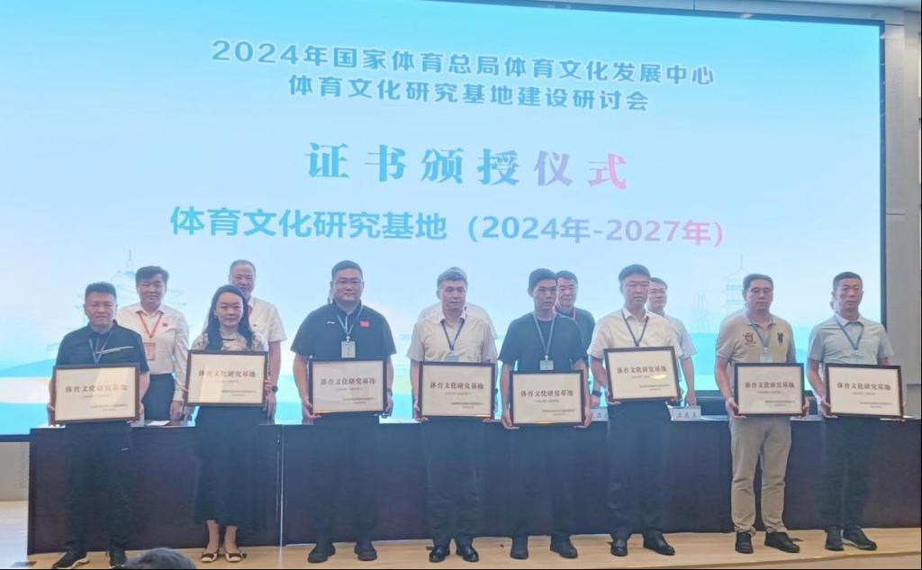 自2007年开始,国家体育总局体育文化发展中心积极与全国各高校及相关单位携手合作,先后建立了多家体育文化研究基地。2023年7月,体育文化发展中心启动基地新一轮认定评估工作,经自主申报、组织推荐、资格审查、现场答辩、专家评审、社会公示等程序,确认89家高校为新一轮周期(2024-2027)的体育文化研究基地。我校体育文化基地顺利通过评估并获得基地证书。