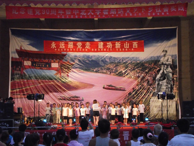 35名学生在院团委书记田维飞老师和研究生助理赵迎辉的带领下走进了柳林县三交镇,开始了我们的为期10天的暑期“三下乡”社会实践志愿服务活动。此次活动的主要目的在于让大学生长知识、增才干,以“永远跟党走,建功新山西,保护母亲河,溯源三晋黄河文化”为宗旨。其主要活动有:(1)宣讲党史(2)庆祝建党90周年--走进新农村文艺演出,(3)义务支教,(4)关于新农村建设的社会调查,(5)保护母亲河,溯源三晋黄河文化。