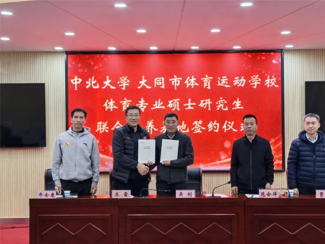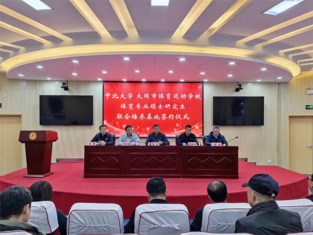 在吴剑院长的带领下,一行三人赴大同体育运动学校签约体育硕士联合培养基地仪式。大同体育运动学校党政班子成员及副科级以上干部共同出席签约仪式。仪式由大同体育运动学校校长兰雷主持。