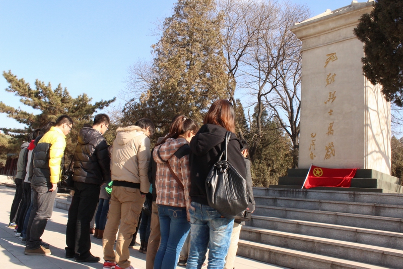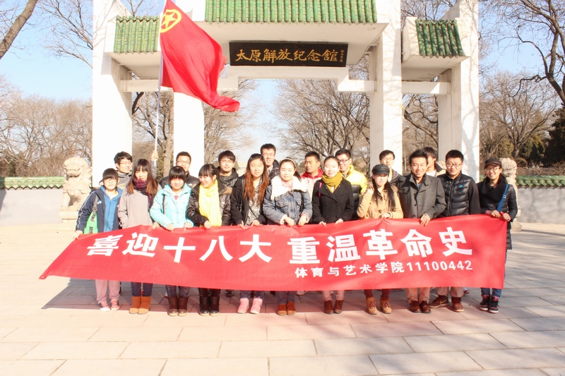 11100442团支部29名同学们在团支书邓超亚的带领下,高举团旗,并怀着对十八大的祝福共同前往山西省太原市牛陀寨烈士陵园参观了革命英雄的红色事迹。