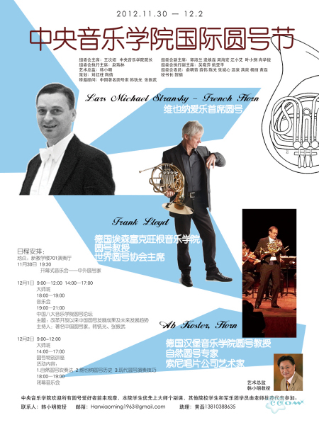 自然圆号专家终身圆号教授Ab Koster,维也纳爱乐乐团圆号首席LarsMichael Stransky等三位大师参加。