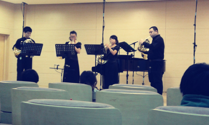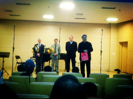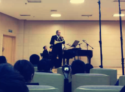 音乐系李斌教授带领7名学生一同进行了学习交流。我校学生们分别由各位国际顶级大师进行了公开授课,大师们肯定了他们学习过程中的优点,更重要的是使同学们意识到和改正了自己的不足。在闭幕式大师音乐会5个节目中,特邀中北大学圆号重奏组穿插了圆号四重奏莫扎特歌剧“魔笛序曲”,同学们敢与大师们同台演奏的平和心理素质以及认真的演奏表现,博得了大师们和现场观众的热烈掌声。来自新加坡交响乐团圆号演奏家高健先生说:中北大学音乐系建立不久,但圆号教学水平竟然这么快的踏入了国内高校的前列,真是令人震惊。来自厦门大学兼职圆号教授厦门爱乐乐团圆号首席王洪光先生感慨道:中北大学管乐教学早有耳闻,今日圆号四重奏的表演果真让人刮目相看。对中北大学圆号表演的赞扬声比比皆是。