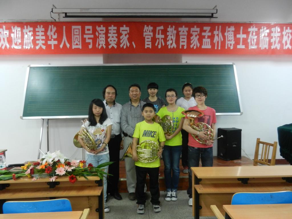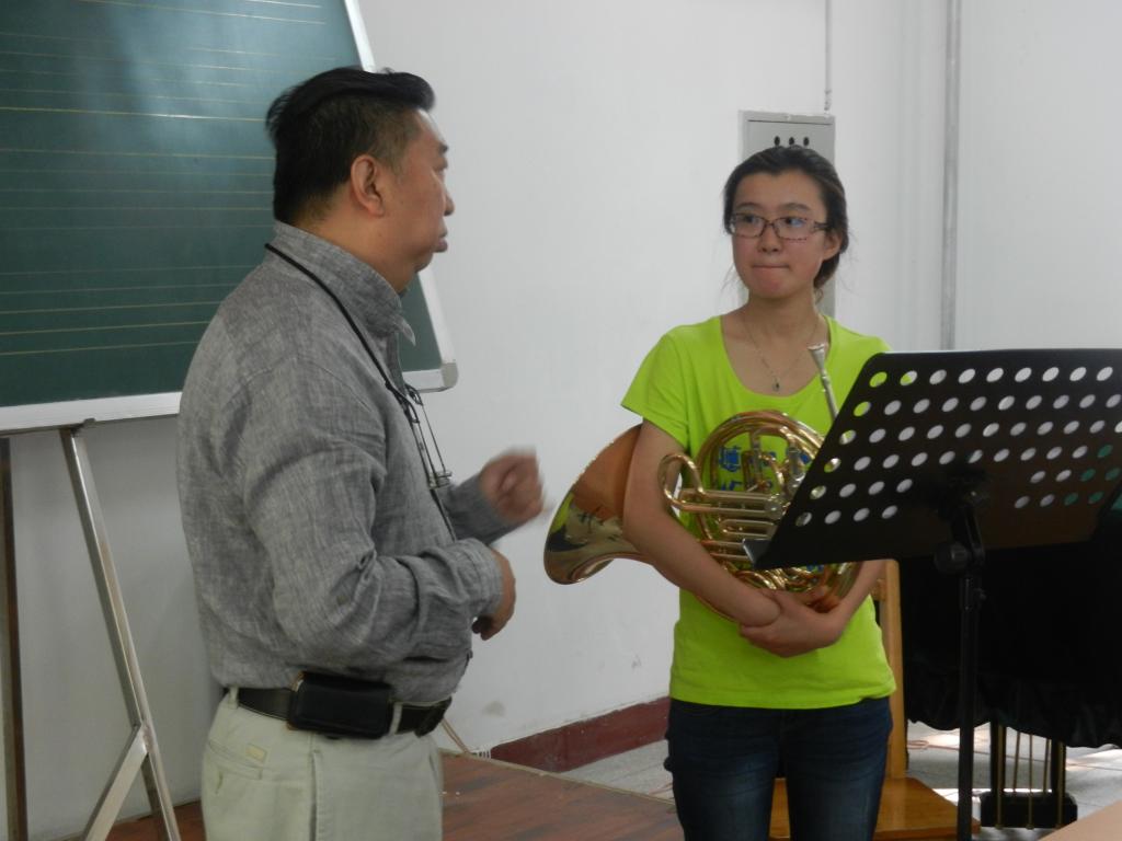 19日全天一对一的圆号公开课,吸引了校内外20余名学生与家长。在领略了世界圆号艺术发展动向的同时,从同学们课后露出笑容的脸上不难看出,他们对孟博士独特授课方式的欣然接受和满意程度。孟博士对山西以及中北大学圆号专业学生现状水平大加赞赏。他说:一个刚刚成立七年的综合大学音乐系,硬件和软件与全国同类大学相距甚远无可比性,但近年来竟然能在全国频频出头露面并不断地闪出一些光亮。再从学生的实力来看,圆号教学水平却能与欧美音乐院校圆号教学接轨。可见中北大学发展之迅猛,切实带动了音乐教学阶段性的发展,实在让人惊讶和敬佩。