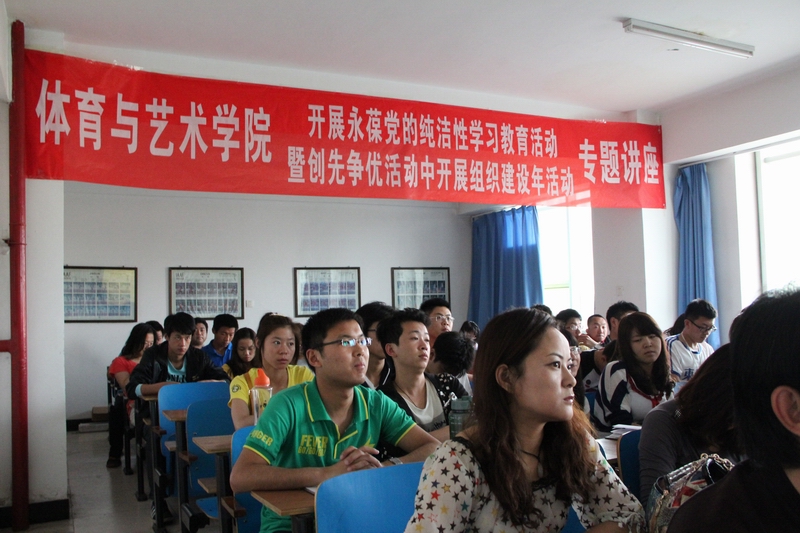 一层多媒体教室做开展保持党的纯洁性教育专题报告。院党总支书记王琳、教足球现场直播