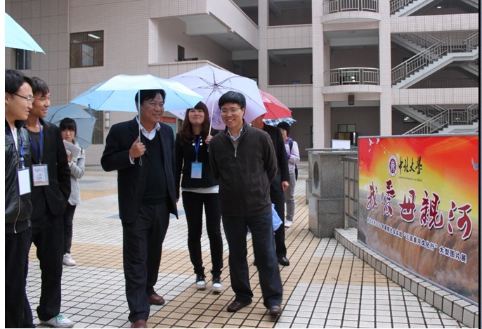 到场的领导有校党委副书记张惠选教授,校团委书记叶玉刚老师,以及各院团委书记。在观看展览时张惠选书记强调,大学生社会实践在与群众广泛接触、了解、交流的过程中能够得到真切的感染和体验。从无数个活生生的典型事例中受到深切的启示和教育,是思想得到升华,社会责任感增强。在展览过程中实践队员与校领导有广泛的交流,实践队员对暑期社会实践有了更好的认识,也为以后社会实践吸取了经验。