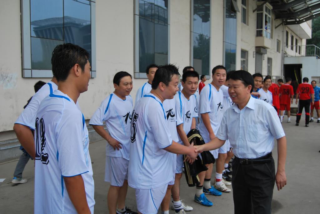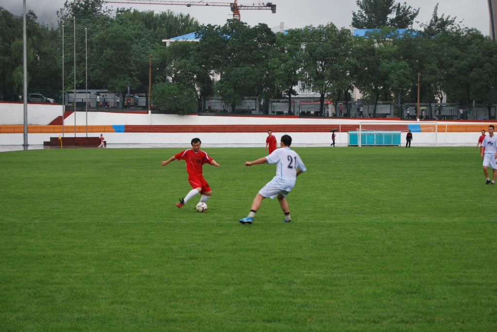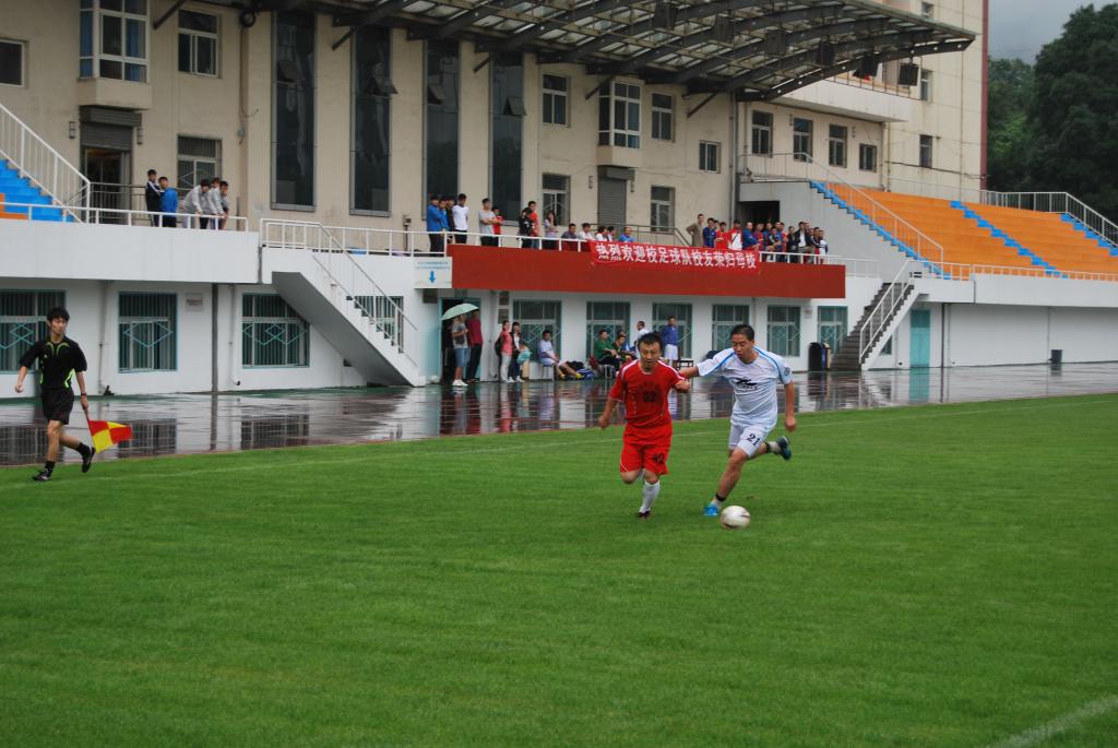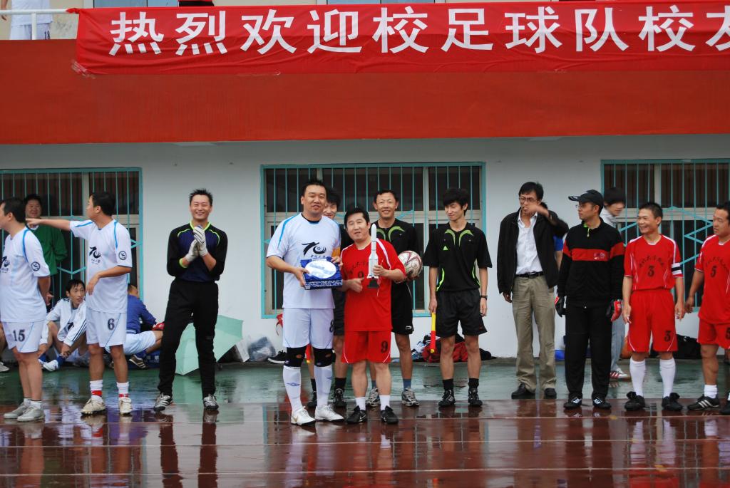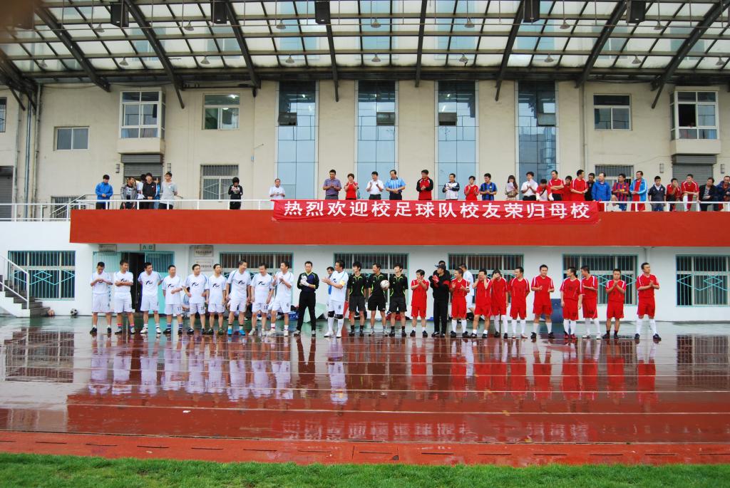 9月3日下午,由我校"华北工足球现场直播 "时期毕业的足球队员组成的“校友足球队”和学校教工足球队,在学校天然草坪足球场进行了友谊赛。沈兴全副校长看望了足球队校友,并为比赛开球。天空虽然下着雨,队员们依然热情高涨,雨中的比赛更加紧张激烈,精彩纷呈,最后校友队以6:4获胜。比赛不仅增进了校友与在校教工的友谊, 更增加了足球队校友对母校的眷恋,绿荫场上凝结着校友们对母校的一片深情。