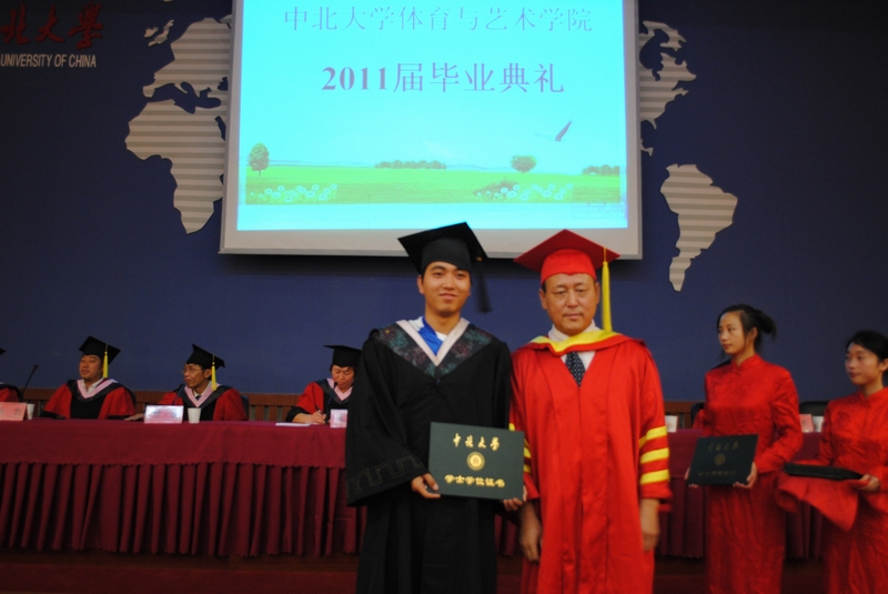 的热爱,对老师的敬意,对同学的不舍以及对未来的规划和期盼,随后毕业代表丰峰同学带领全体毕业生宣誓,然后是2009级学生代表石海燕向07级学生表示感谢与祝福,并表明要继承他们刻苦求实、奋发拼搏的优良传统,在大学时代留下辉煌灿烂的一页。随后,毕业生身着学士学位服走上主席台,庄严神圣地接受学位授予。院长刘定一为获得学士学位的毕业生颁发学士学位证书,给他们正冠拨苏,握手道贺,并与他们合影留念。学位授予结束后,毕业班为足球现场直播