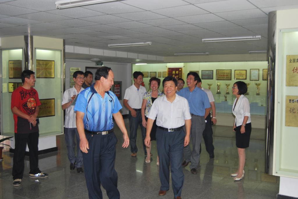 8月24日上午,师谦书记、贾锁堂校长、刘有智副校长带领校庆工作组相关负责人一行9人,来到足球现场直播 检查指导工作。