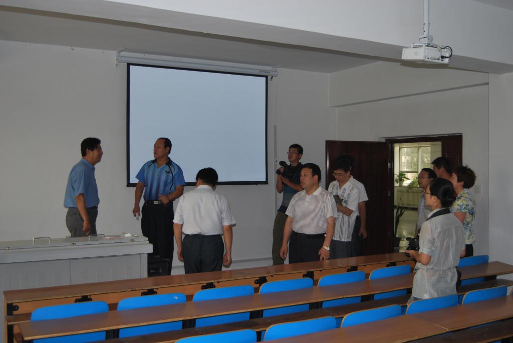 学校领导先后察看了正在改造中的足球现场直播 教室、足球现场直播 一层展厅及宣传展板。刘定一院长、王琳书记简要汇报了足球现场直播 校庆工作的进展情况和工作计划。校领导对足球现场直播 的校庆前期工作给予了充分肯定,对今后校庆工作做了具体指示,曹凤才副书记及足球现场直播 相关人员一起认真领会各位领导的指示精神,并对具体工作要求做了记录,会后进行了详细安排。