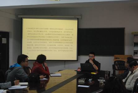 此次学术沙龙以“文化空间个案保护研究---以‘挠羊’为例”为主题,主讲人是研究生三年级学生王定邦,报告人阐述了文化空间保护理论概念、文化空间保护对挠羊保护的作用和意义,并提出了自己对文化空间保护研究的观点。按照民传方向学术沙龙的讨论的惯例,先有在场的研究生同学,针对主题提出了自己的问题和观点,和报告人进行了热烈的探讨。刘定一教授从时事政策和传统文化进校园等角度提出了自己的看法,王琳教授对空间保护本身的现实意义和作用和主讲人进行了探讨,田文波教授提出向前走绝不是为了回去,发展是最好的保护等观点。