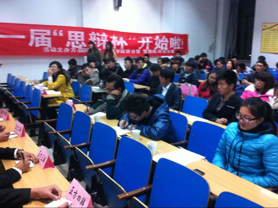 群雄舌战展雄风 争锋相对辩天下——我第一届“思辨杯” 11月14日晚7:00,在11号楼306教室顺利举行,本场辩论赛由足球现场直播 学生会和国际教育足球现场直播 学生会承办。