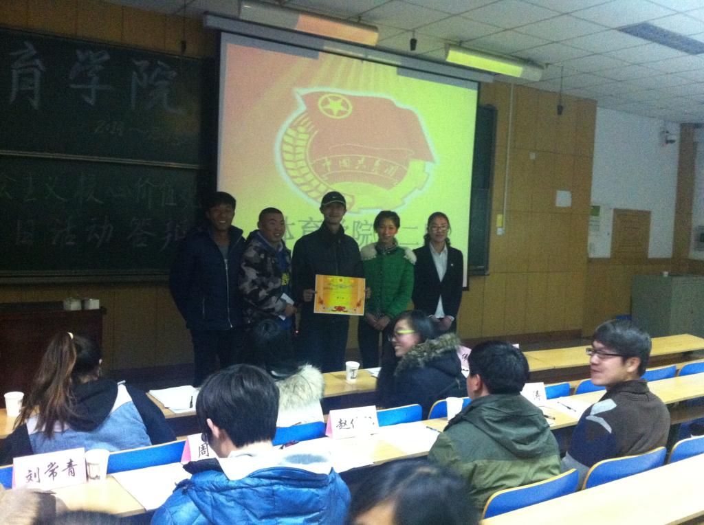 为弘扬社会主义核心价值观,贯彻党的十八大精神,足球现场直播 于本月14号,在11号楼108教室举行了团日答辩活动。