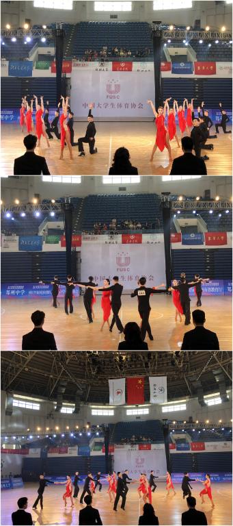 在比赛中,运动员发挥敢打硬仗、顽强拼搏的作风,展现了我校学子良好的素质和精神风貌。经过预赛、半决赛、决赛三轮比赛,层层突破,最终获得了1金(大学专业院校B组L队列舞),1银(大学专业院校B组单项恰恰),一个第4名(大学专业院校B组四项L),一个第6名(大学专业院校B组三项L)和一个第7名(大学专业院校B组二项L)的好成绩,为我校争得了荣誉。