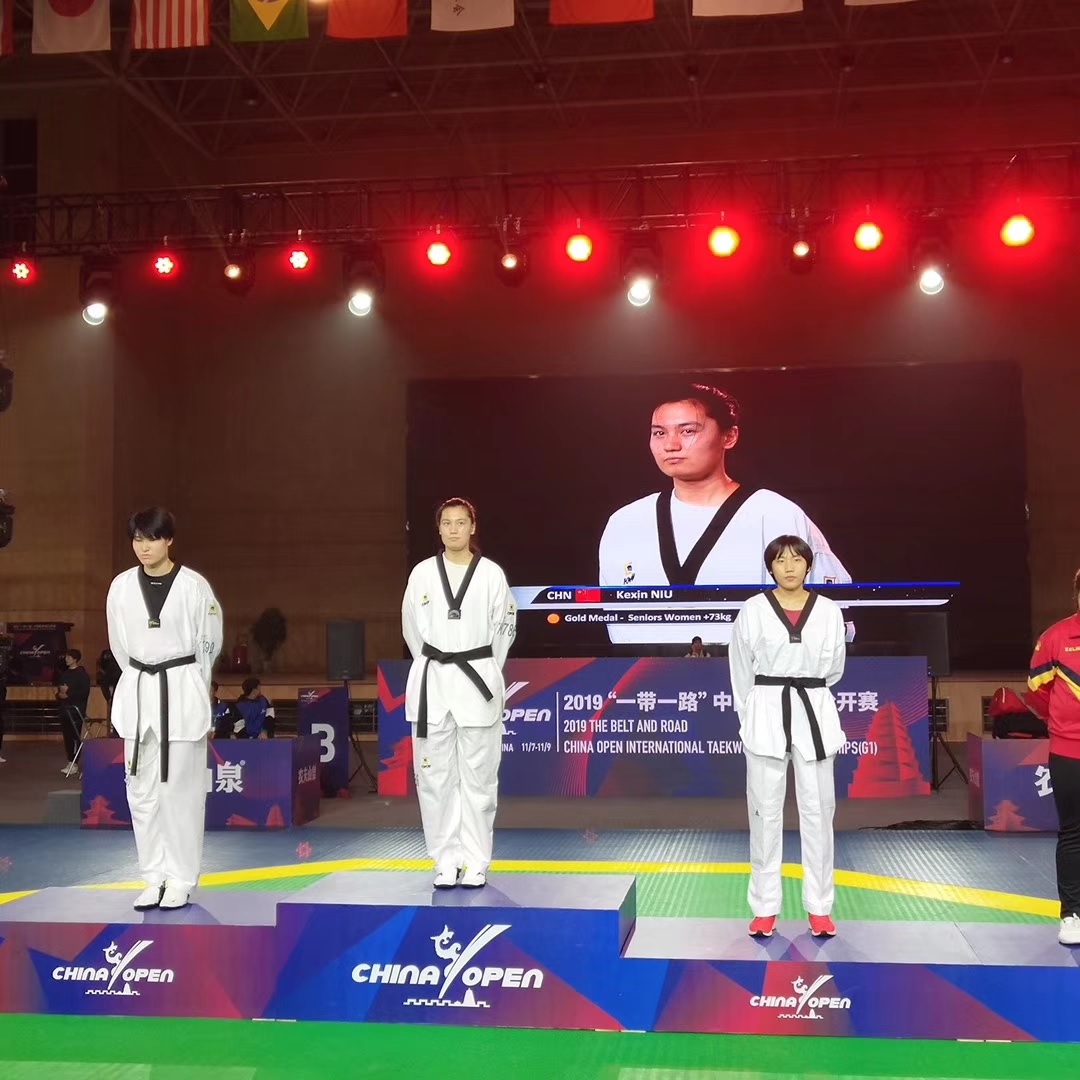 2019年11月9日,我校运动训练学生钮可欣,在西安举办的“一带一路”中国跆拳道国际公开赛上夺得女子+73公斤级的冠军。该赛事为G1级别的奥运会积分赛,是国际A级赛事,来自全球16个国家和地区的近600名选手参赛。在世界跆拳道联盟的竞赛体系中,几乎所有的世界冠军都要经过G1级别赛事的历练。与国内选手相比,国际选手的技术风格更为多样,进攻速度更快,钮可欣同学不畏强敌,沉着应战,一路过关斩将,摘得桂冠!这是我校2019年再一次在国际A级赛事取得优异成绩,可喜可贺!希望同学们再接再厉,不断取得优异成绩!