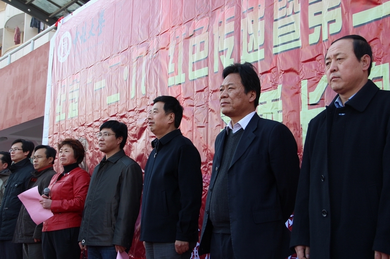 12月9日下午15:00,为纪念“12.9”运动七十六周年,加强大学生爱国主义教育,弘扬一二.九革命精神,提高大学生身体素质。在主田径场举行的纪念一二.九红色传递暨第二届“阳光体育与快乐校园同行”冬季长跑活动隆重开幕。一首熟悉的国歌,让全体师生一起重温那段刻骨铭心的历史,感怀一二.九爱国学生的精神。在新的历史时期,我们依然需要那颗虔诚的爱国之心,需要那份拳拳的报国之情。此次大赛的到场嘉宾有校长贾锁堂教授,校党委副书记张惠选教授,校运动委员会副主任,体育与艺术足球现场直播