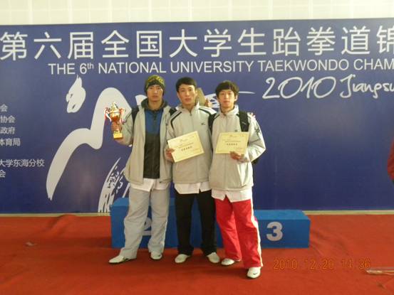2010年参加第六届全国大学生跆拳道锦标赛我校学生宗西号在高水平组荣获男子78公斤银牌,李新建在高水平组荣获男子62公斤铜牌,谷跃在高水平组荣获女子+72公斤铜牌,周晓宇、李冠宇分别在女子63公斤和男子58公斤获第五名。