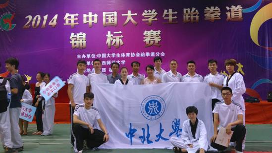 2014全国大学生跆拳道锦标赛于723日至25日在广西桂林举行,全国共90多所高校,近千名运动员参加,经过四天激烈的角逐,中北大学代表队共夺得31银,2个第五名的历史最好成绩,其中女子竞技团体金牌是我校团体竞技首次夺冠。